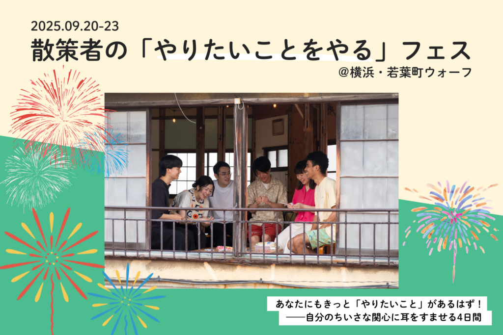 夏だ!花火だ!お祭りだ!——散策者が送る夏の一大イベント「やりたいことをやる」フェスが、2025年9月20日(土)〜23日(火・祝)の4日間、横浜・若葉町ウォーフで開催されます。